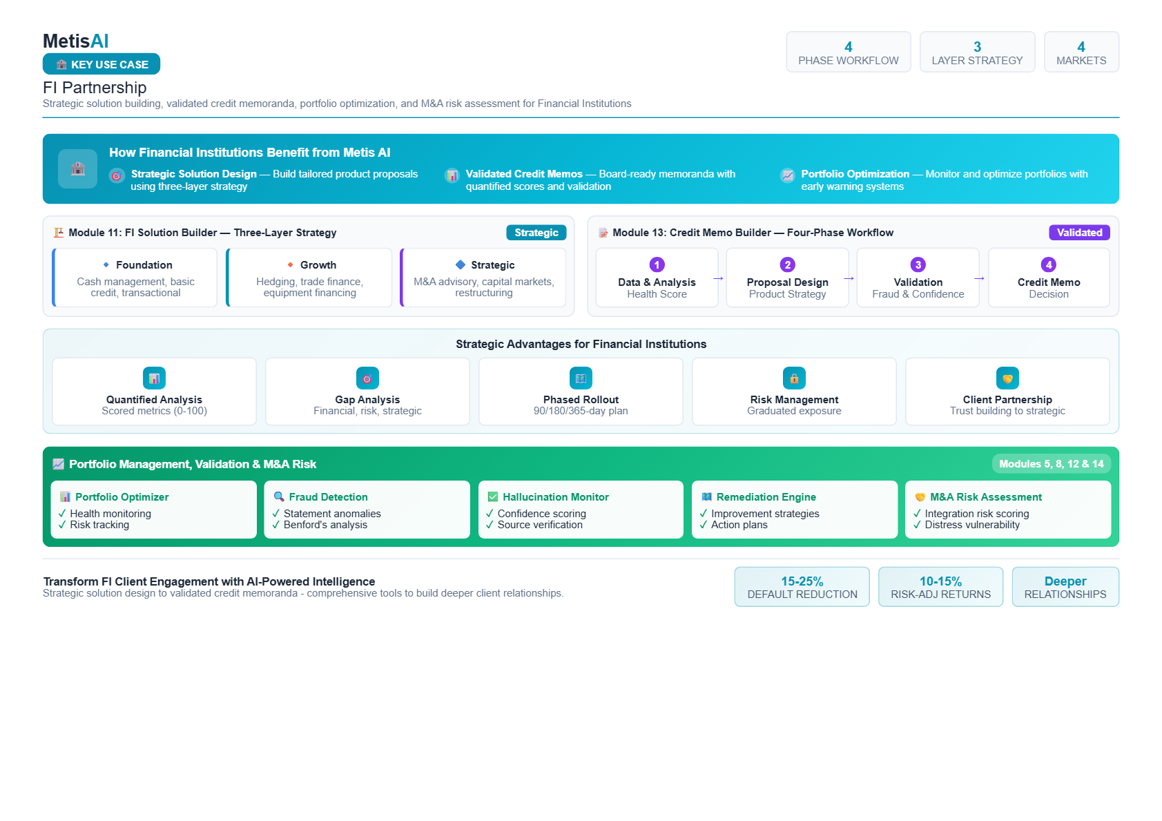 Strategic solution building, validated credit memoranda, and portfolio optimization for Financial Institutions